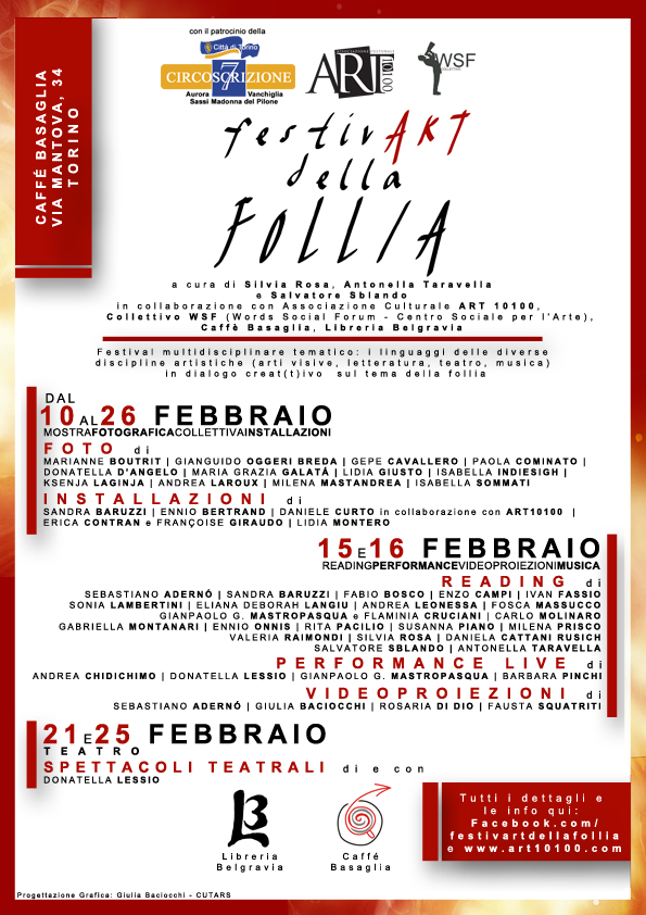 Nel mese di Febbraio 2014 presso il Circolo Arci Caffé Basaglia di Via Mantova 34 Torino, si svolgerà la prima edizione del FestivART della FOLLIA, festival multidisciplinare tematico.