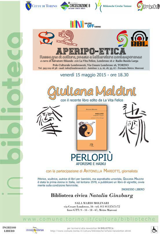 Letture e discussione, con la partecipazione attiva del pubblico, di testi poetici tratti dalla raccolta di aforismi e haiku “Perlopiù” (La Vita Felice)