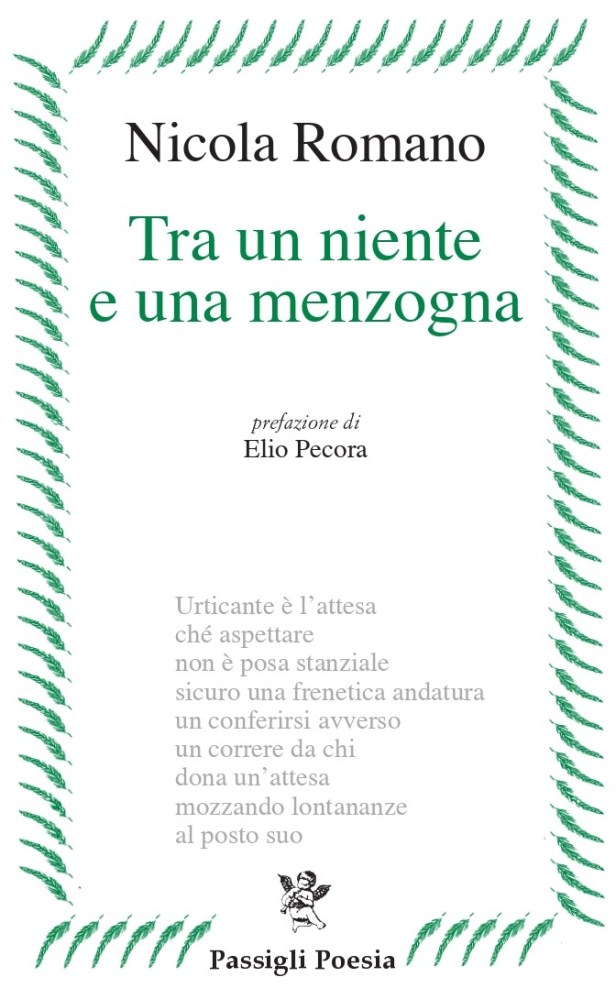 Inverare l’invisibile che si cela tra e nelle cose è l’esito ultimo cui mira la poesia. Una parola che rappresenti le fitte ombre che si addensano intorno al mistero vince sul nulla e si approssima al vero. Ecco dunque situarsi, tra un niente e una menzogna, quel quid imponderabile che libera la voce del poeta e la ammanta di «parole necessarie ed esatte, perciò durevoli». Con questa sua ultima raccolta, Nicola Romano getta luce fra quei due poli che innervano l’intero discorso poetico, il nulla e la finzione, ambedue spettri di un reale imprendibile e sul quale comunque si agitano «la luce piena e le fittissime ombre, la spossante malinconia e l’intensità degli affetti, l’ironia affilata e i goduti sarcasmi» della sua sicilianità. Nelle scelte lessicali e stilistiche il poeta predilige l’impiego di una parola materica e ruvida, che si posa sul foglio con la levità di uno sguardo comunque abile a valicare gli aspetti gravi dell’esistenza e lo smacco di quel «sogno di assolutezza che ammala l’uomo e lo rende incerto e insicuro di quanto gli tocca e gli preme». Le parole di Romano si sollevano da «un letargo illogico», protese nel tentativo di risolvere l’enigma di un’assenza e così «brillare di senso»:
