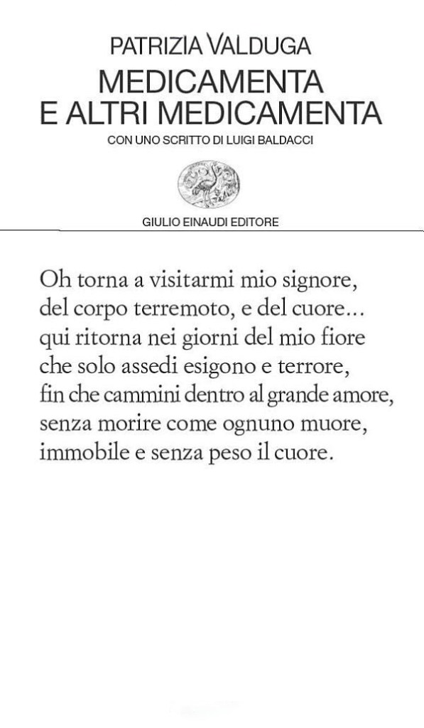 Patrizia Valduga, Medicamenta e altri medicamenta, con uno scritto di Luigi Baldacci, Einaudi, 1989